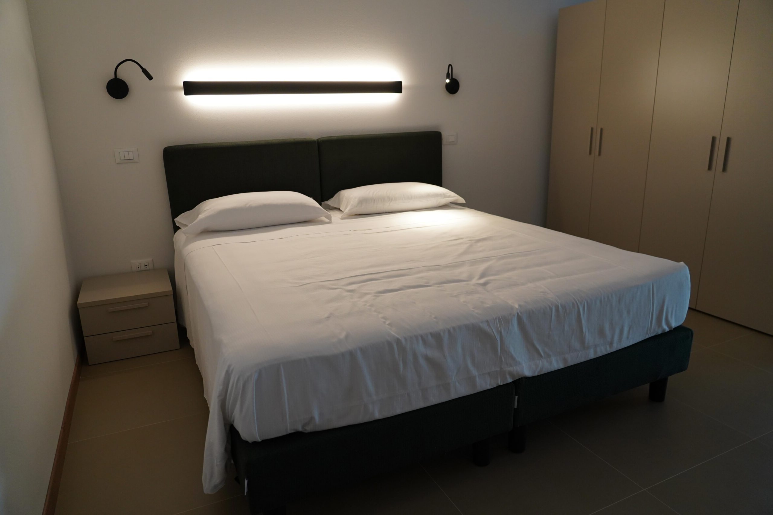 Goditi l’ampio box doccia e una cucina completa di piano a induzione, lavastoviglie, stoviglie, posate, macchina del caffè a cialde e forno a microonde. Ogni ambiente è climatizzato e dotato di ricambio d’aria continuo 24/7, per un benessere costante. Questa camera in particolare è pensata per due persone che voglio dormire nello stesso letto, comodo e confortevole a due piazze.